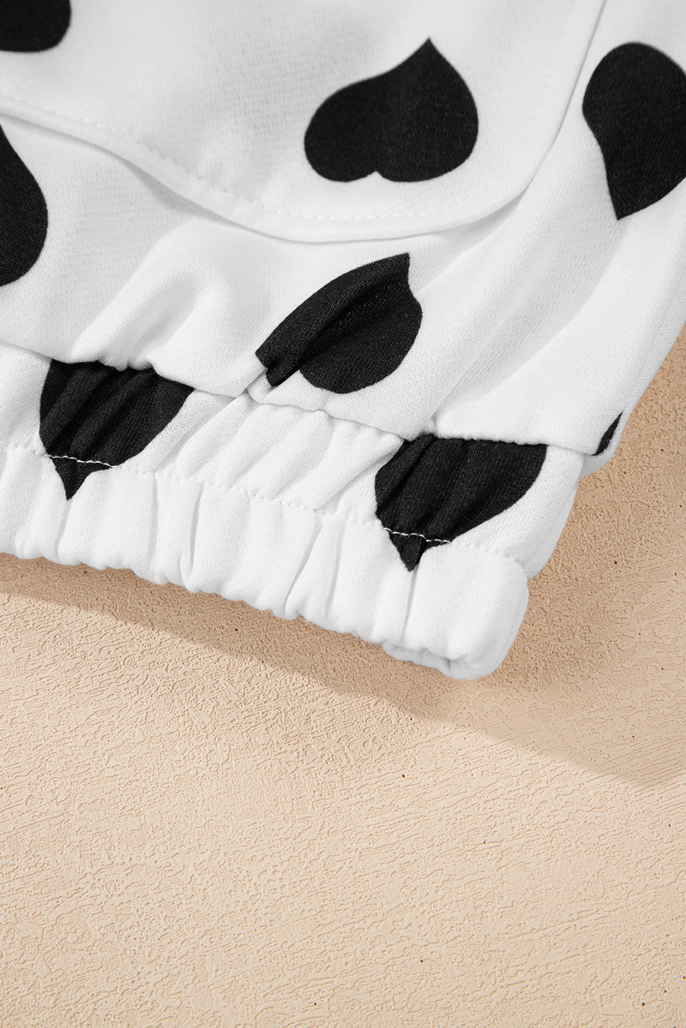 White Double Flap Pocket Heart Print Collar Zip Jacket