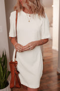 Sale Blossom Corded Knit Crew Neck Puff Sleeve Shift Mini Dress