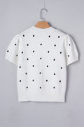 White Elegant Polka Dot Bubble Short Sleeve Sweater