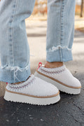 White Embroidered Sherpa Plush Thick Sole Winter Slippers