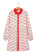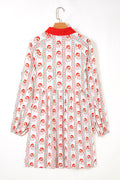 White Father Christmas Contrast Collar Button Front Long Sleeve A-line Mini Dress