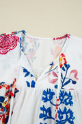 Sale White Floral Print Tassel Tie Bracelet Sleeve Flowy Blouse