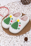 White Fuzzy Christmas Tree Pattern Home Slippers