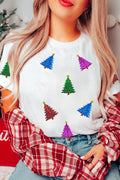 White Glitter Christmas Tree Pattern Cuffed Sleeve Christmas T Shirt