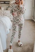 Sale White Holly Print Thermal Pullover Pants Lounge Set