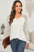 White Lace Patchwork Long Raglan Sleeve Pleated Top