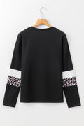 Sale White Leopard Colorblock Patchwork Crew Neck Long Sleeve Tee