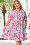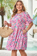 - This plus dress is gorgeous and fashionable with allover floral pattern.The frilled short sleeves adds extra feminine charm.High waist design gives a slender figure by conceal extra waistline.Accessorize with fave necklace and bracelet for a complete look.