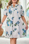 - Elevate your style with this floral dress, perfect for any occasion.Designed for plus sizes, this dress accentuates curves beautifully.Short puff sleeves and a contrast tie V-neck add a touch of charm.Transition seamlessly from day to night in this stylish dress.