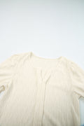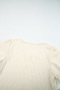White Solid Color Textured Notched Neck Puff Sleeve Blouse