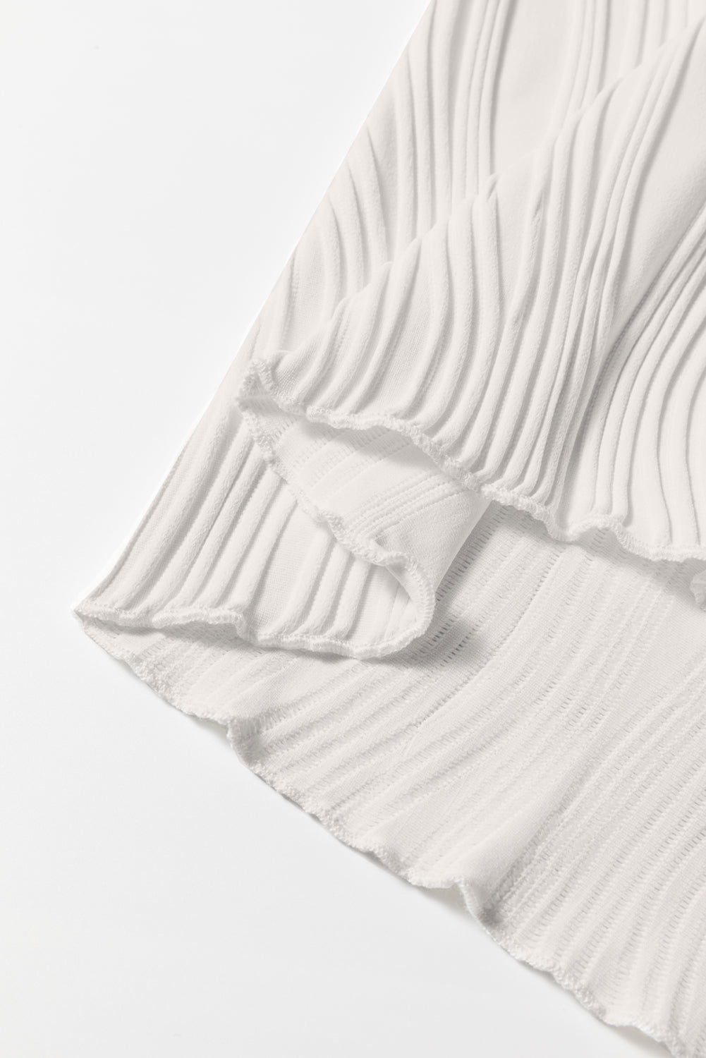 Sale White Solid Color Wavy Textured Round Neck Tank Top