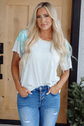 Sale White Textured Knit Exposed Stitching T-shirt