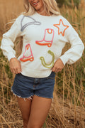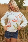 White Tinsel Western Boots Horseshoe Star Knit Crew Neck Sweater