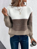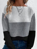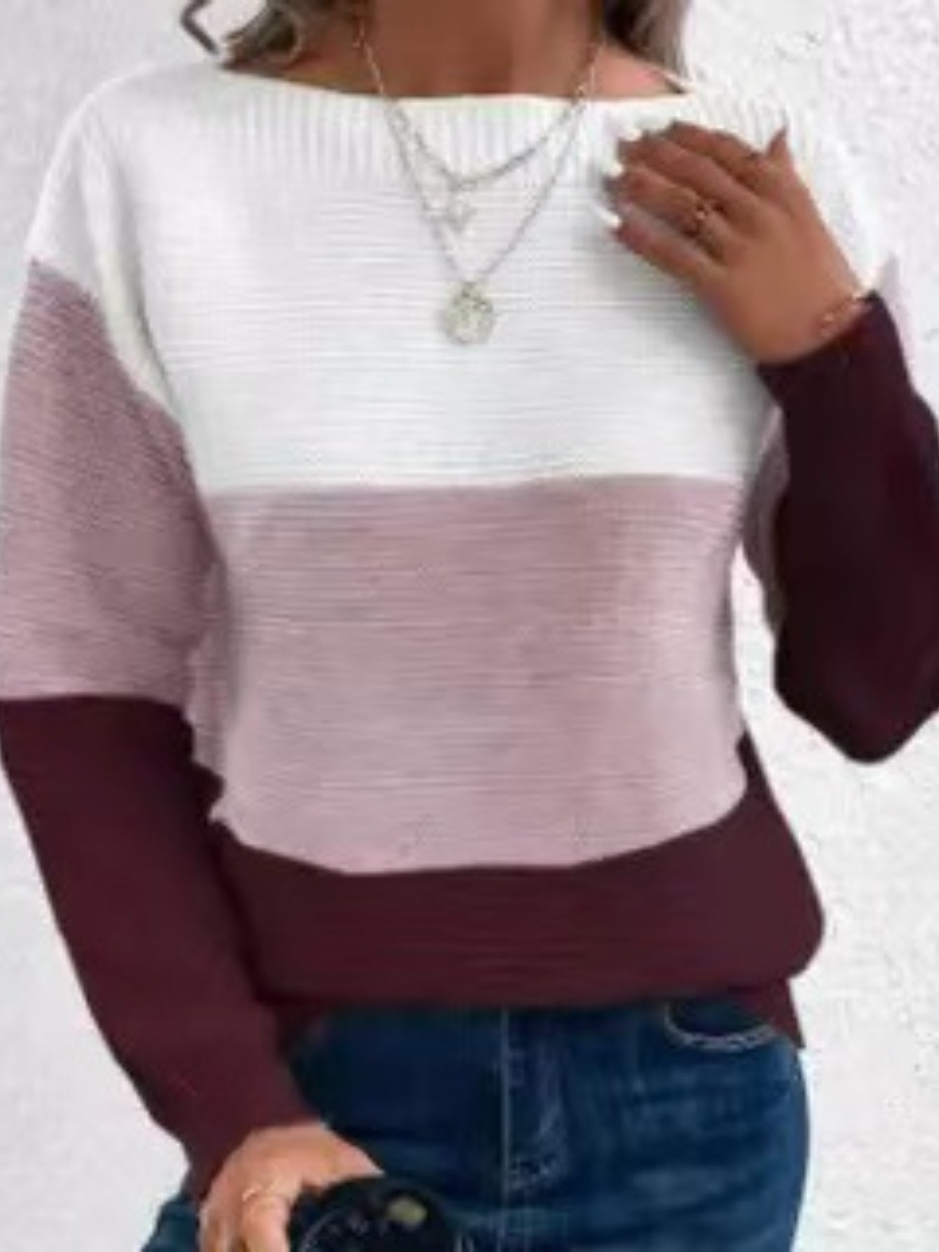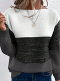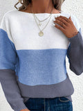 Long Sleeve Pullover Color Block Boat Neck Sweater