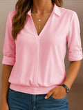 Women Plain Comfy Cotton V Neck Long Sleeve Shirt