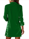 Plain Long Sleeve Shawl Collar Split Joint Dress Holiday Vintage Fit & Flare A-Line Spring/Fall Mini Dress
