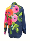 Casual Floral Print Blouse with Lapel Collar
