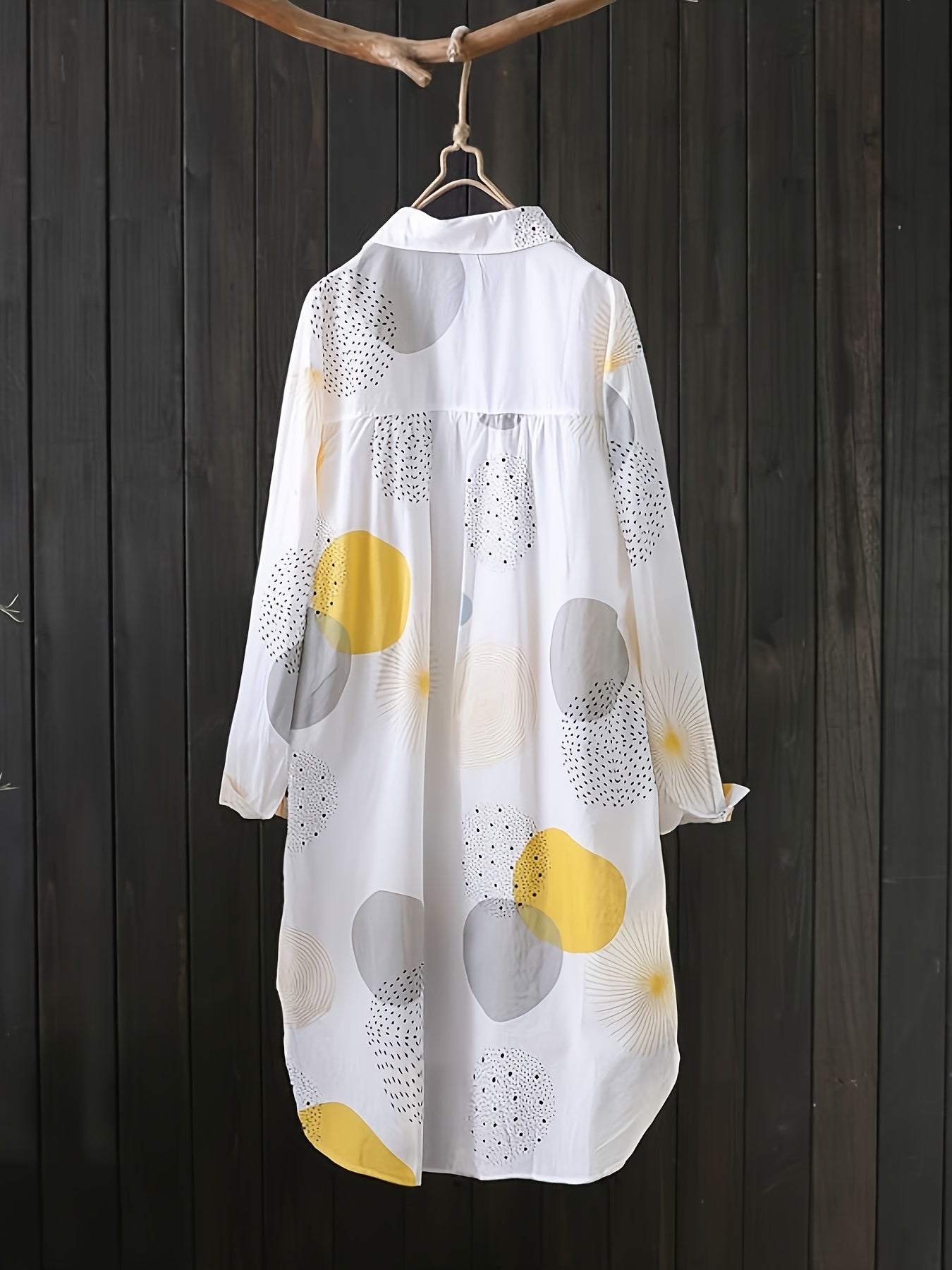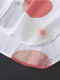 Women's Casual Long Sleeve Lapel Shirt with Graphic Print Button Front