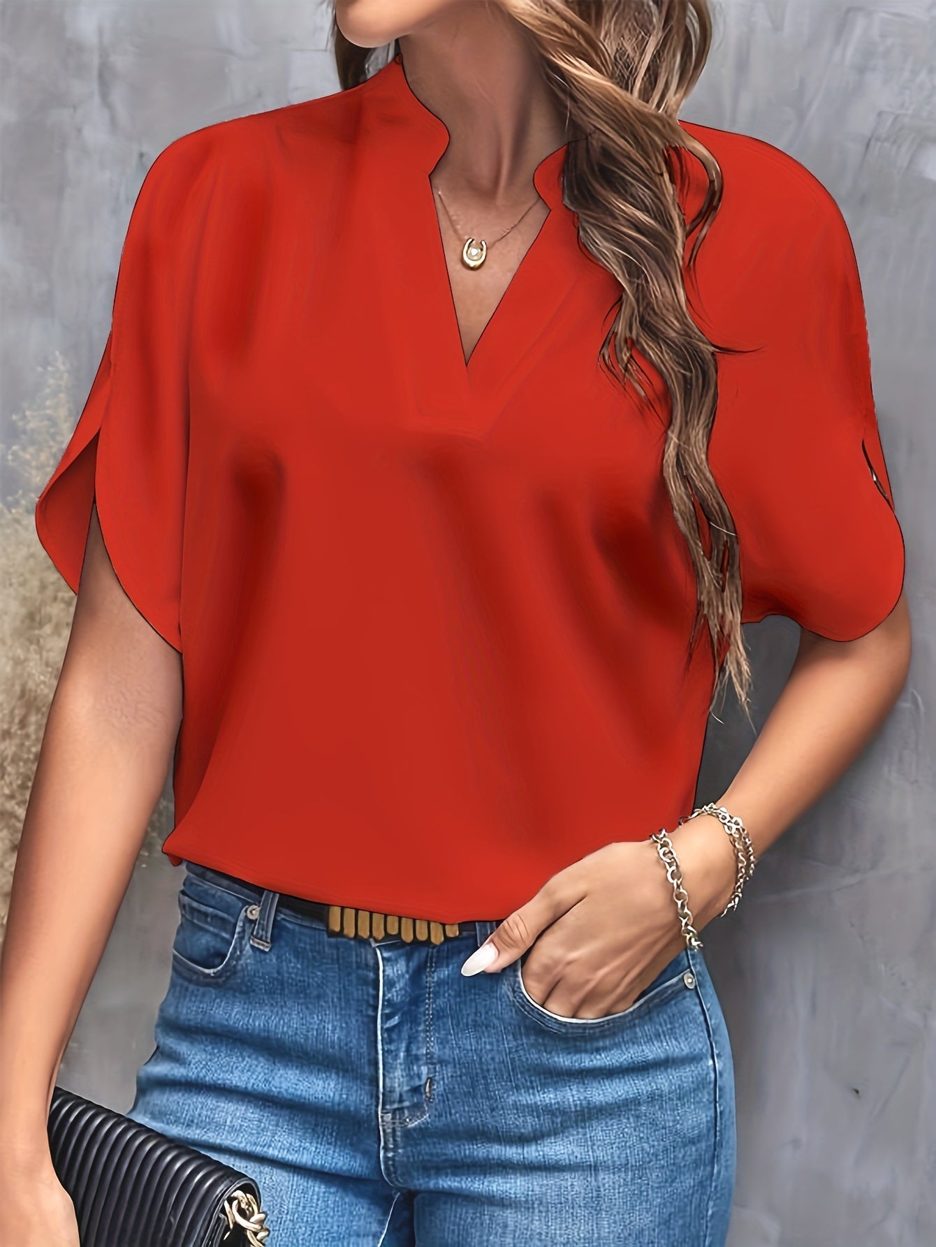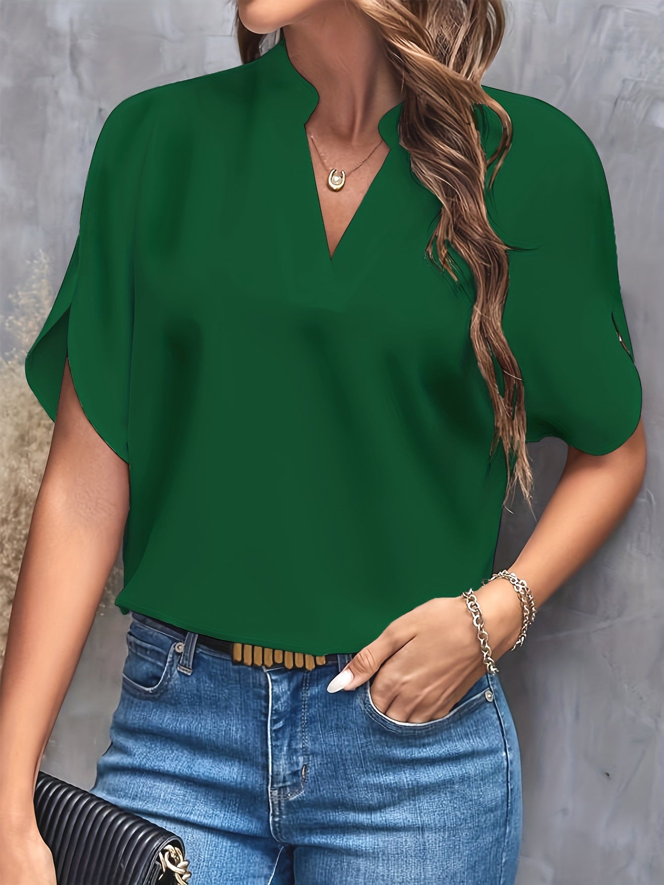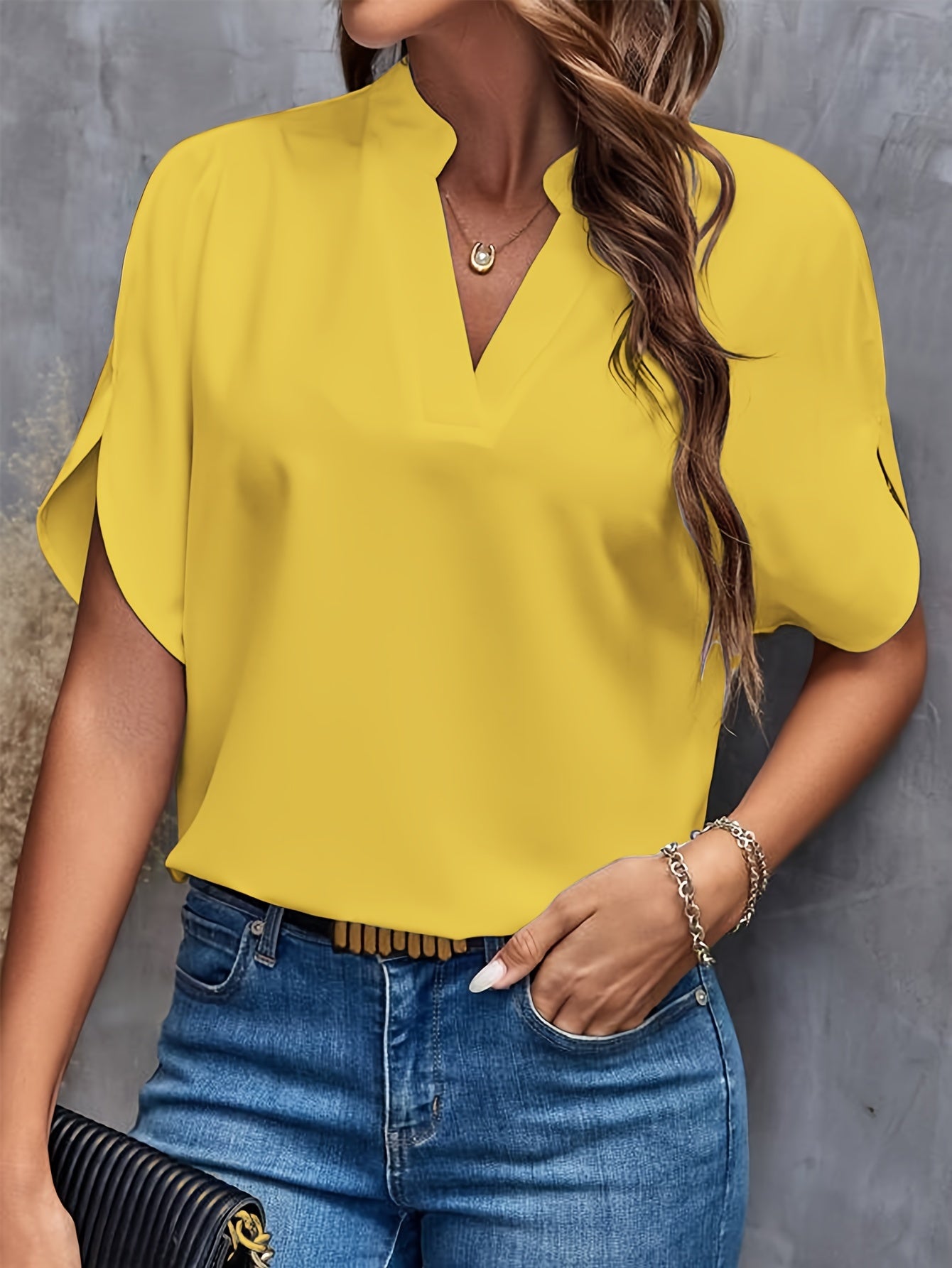 Women's Casual Notch Neck Blouse with Split Sleeves