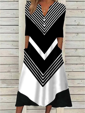 Sale Graphic Print Dress with Long Sleeves and Pockets - Casual and Comfortable