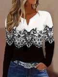 Casual Geometric Pattern V-Neck Long Sleeve T-Shirt