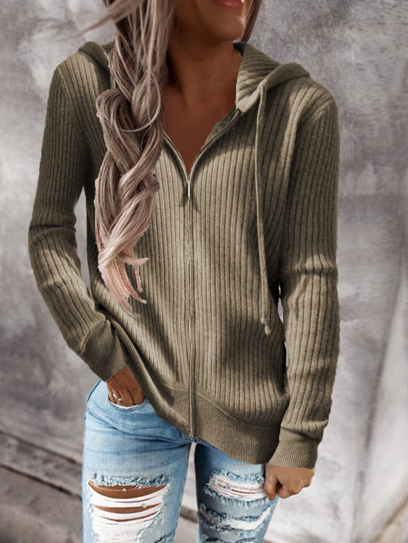 Women's Casual Zip Up Hoodie with Drawstring and Long Sleeves - Stay Warm and Stylish