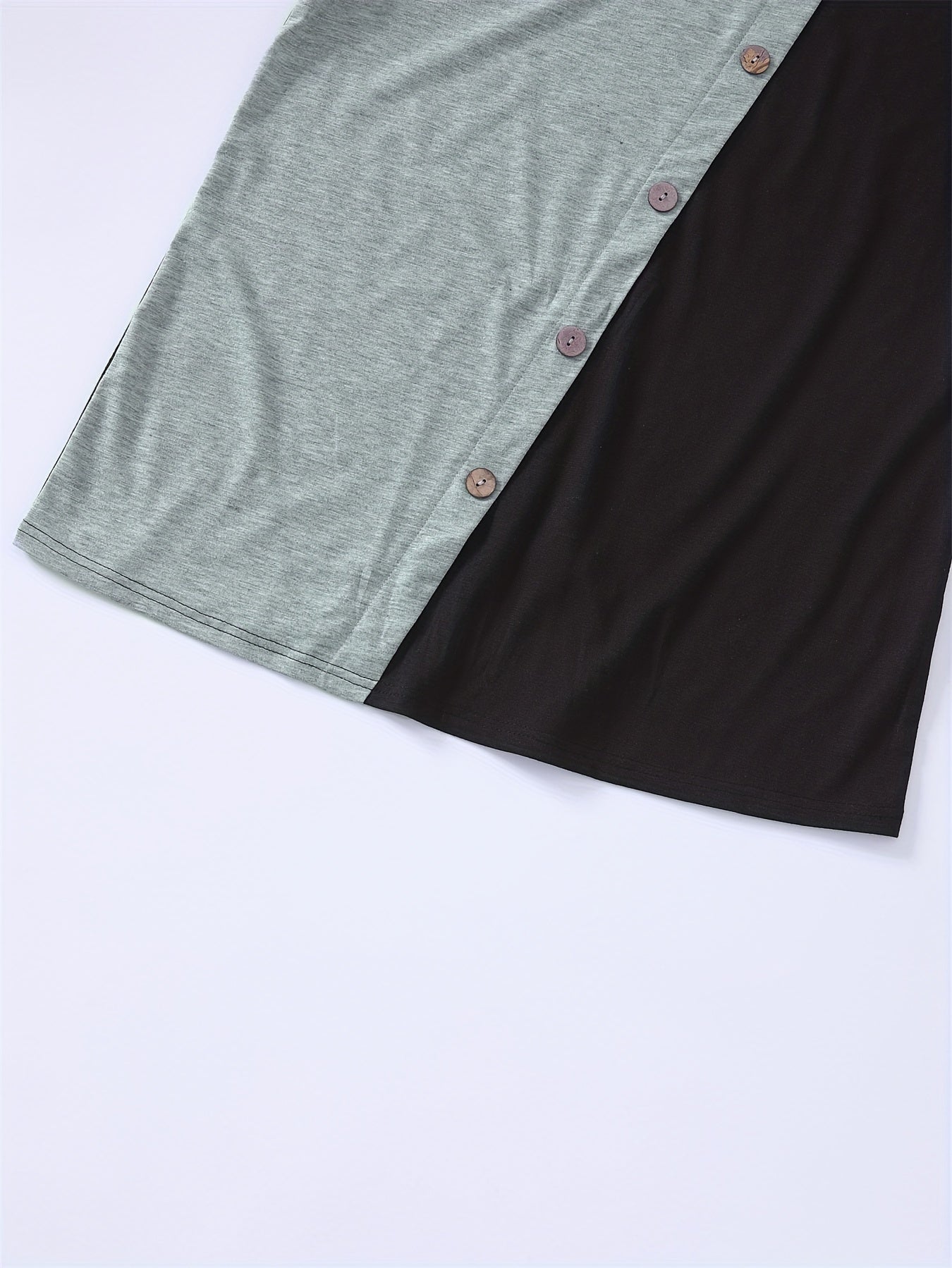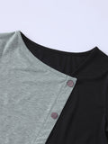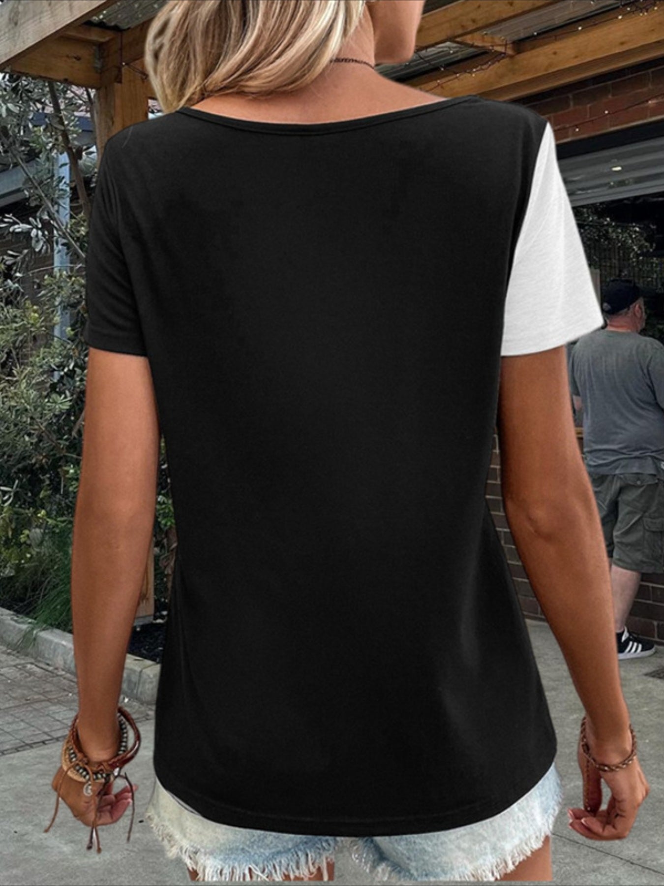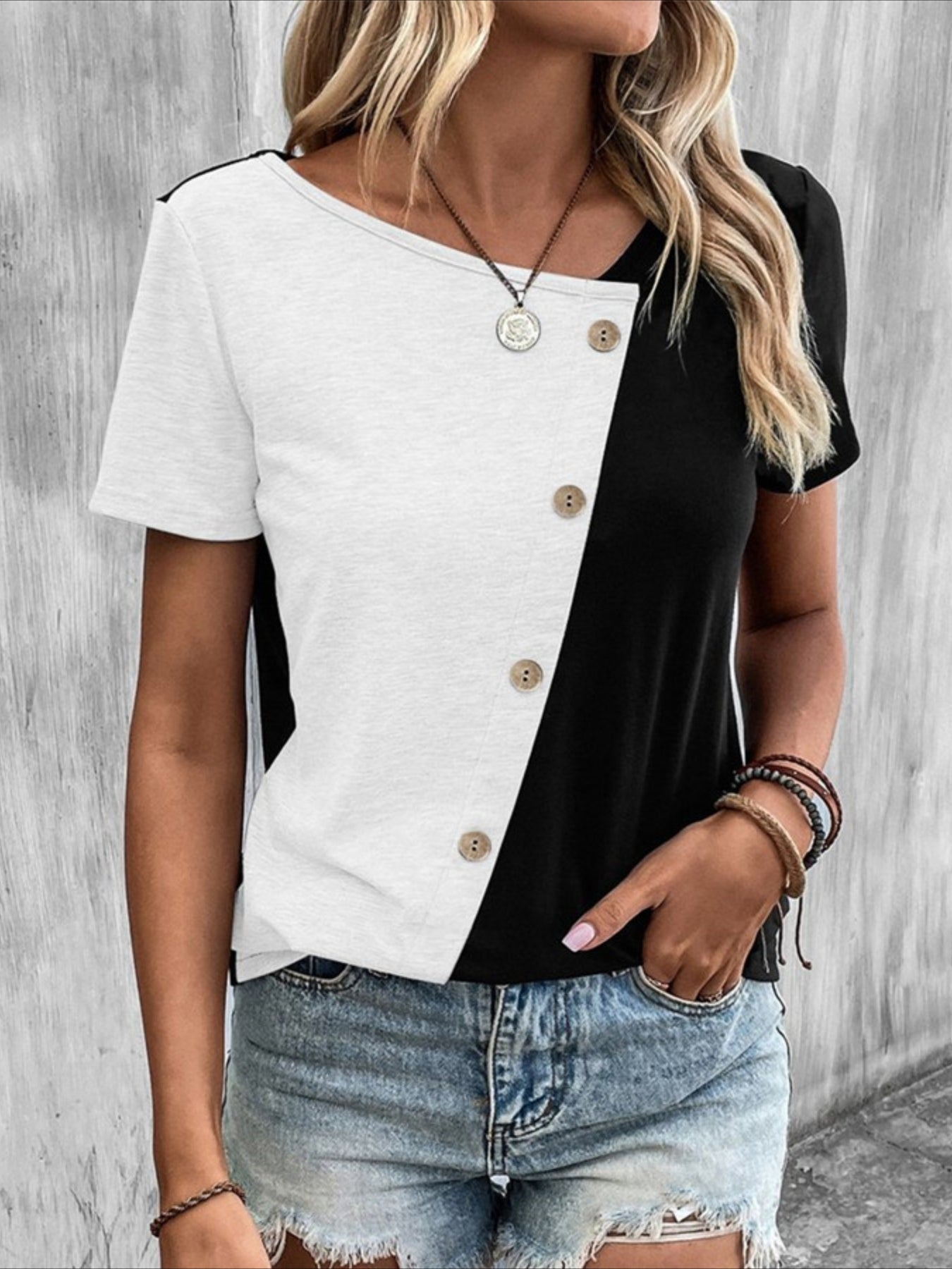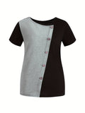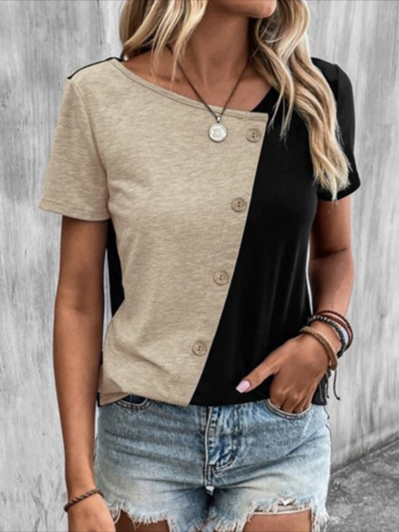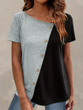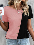 Color Block Asymmetrical Neck T-Shirt - Casual Short Sleeve Top