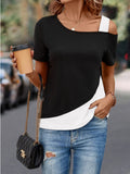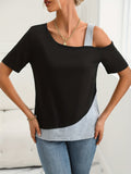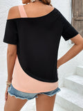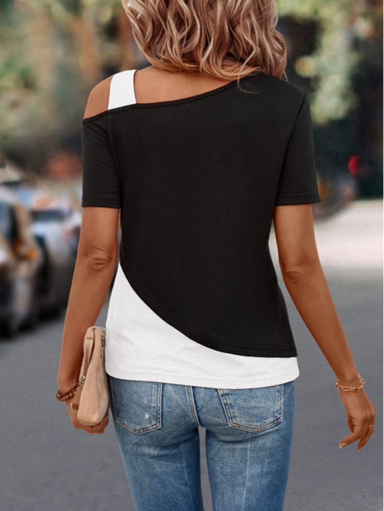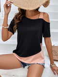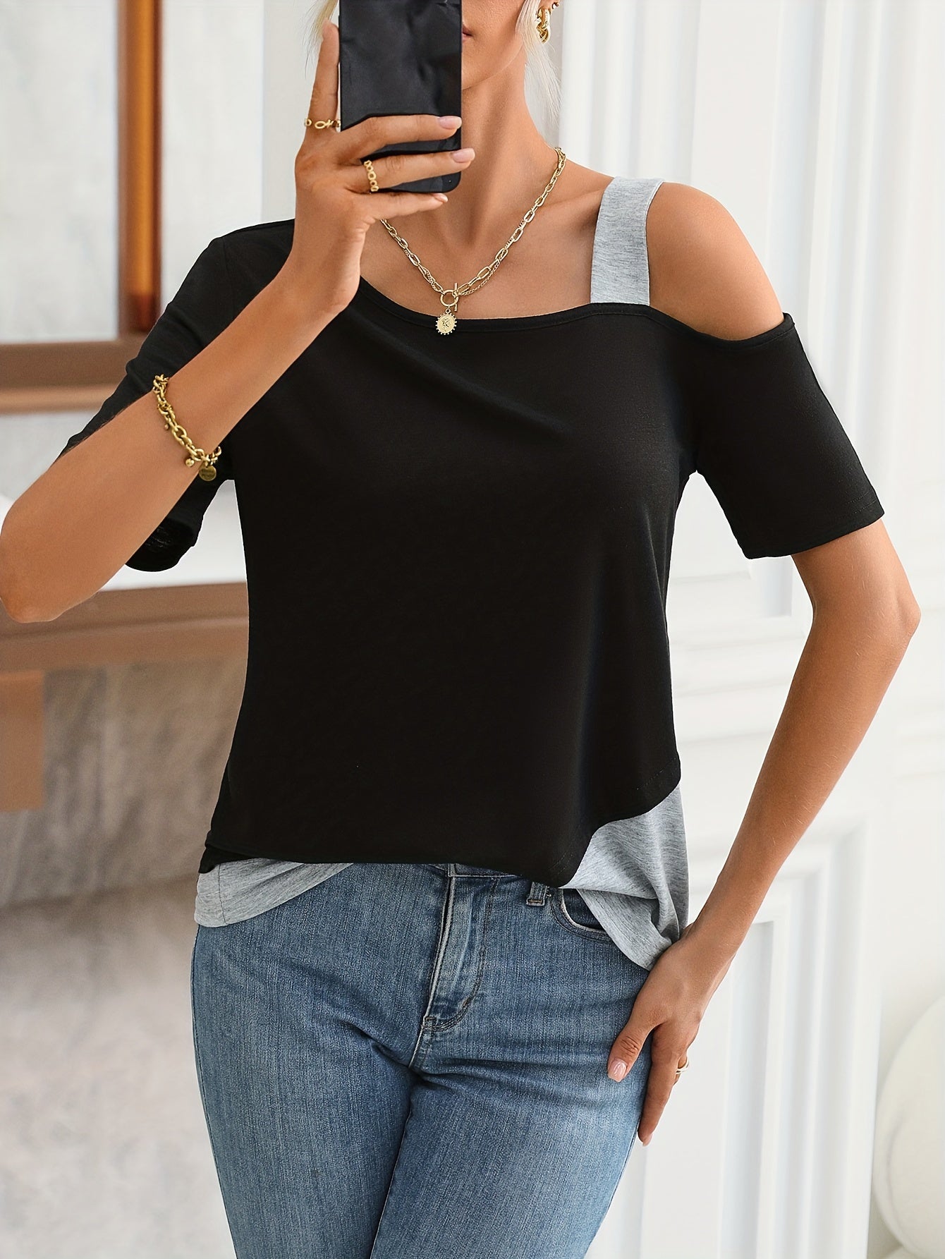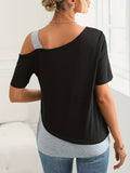 Women's Colorblock Cold Shoulder T-Shirt - Casual and Comfortable