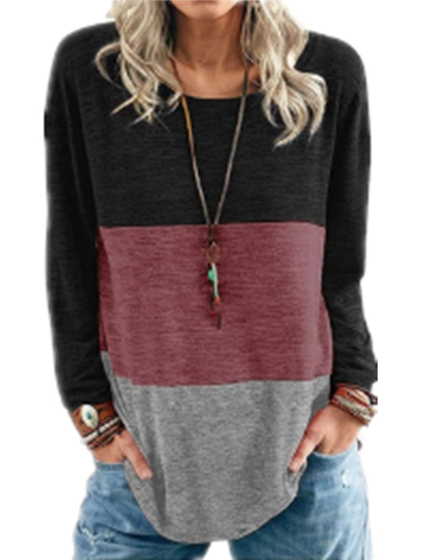 Women's Colorblock Long Sleeve Round Neck Medium Stretch Top