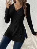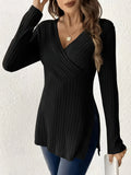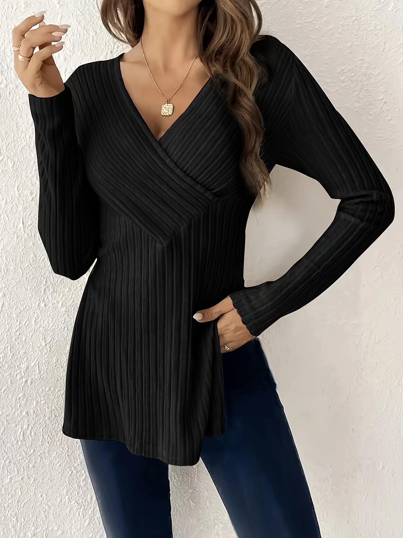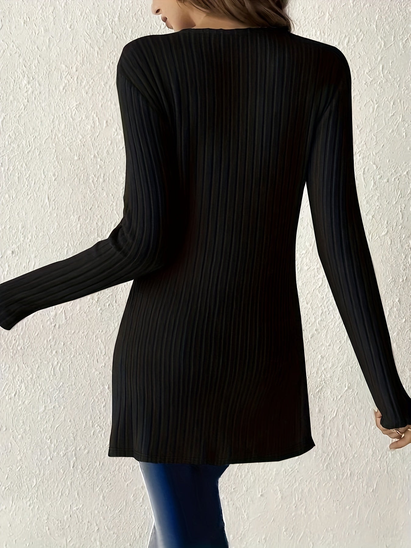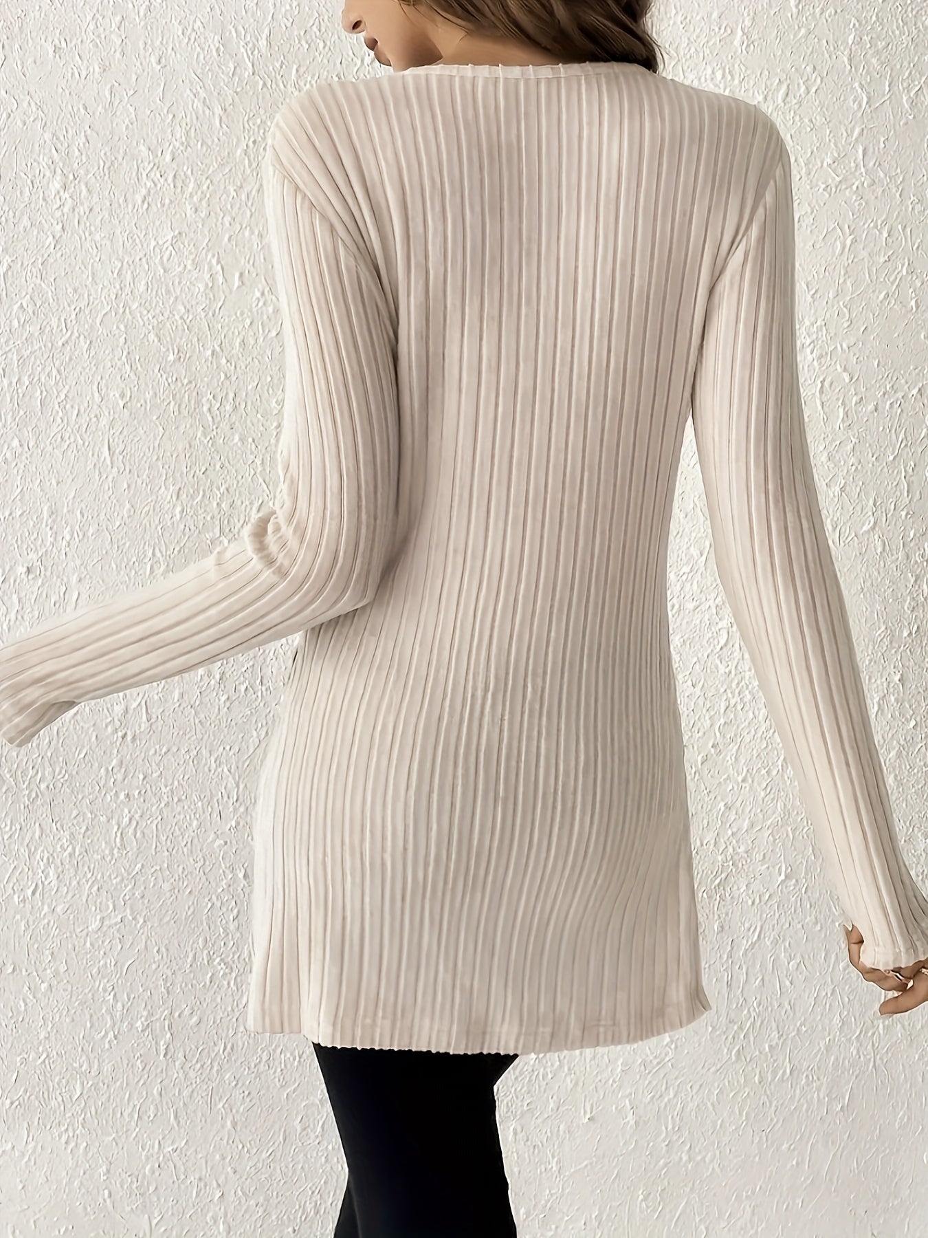 Women's Elegant Long Sleeve Ribbed Knit Top