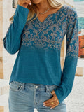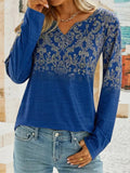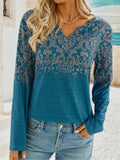 Women's Floral Print Long Sleeve V-Neck Tops, Casual Fall Winter Blouses