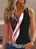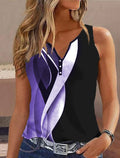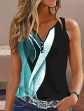 Sale Women's Color Block Print Sleeveless V Neck Tank Top
