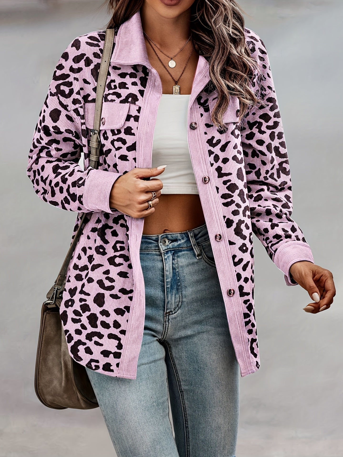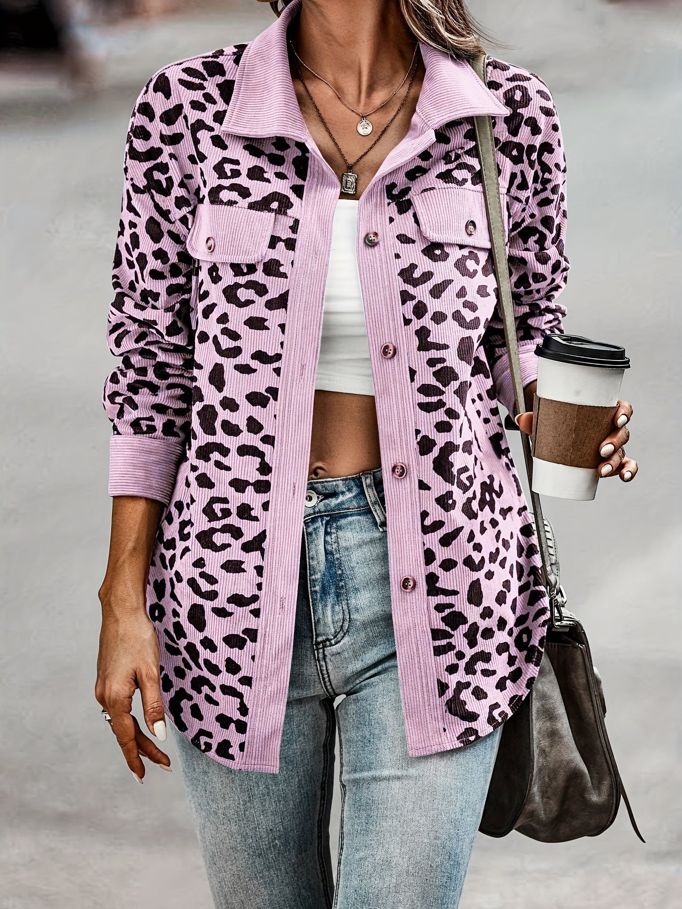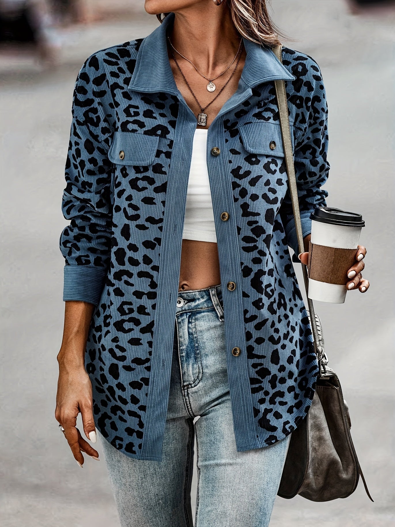 Women's Leopard Print Shacket Jacket - Stylish and Comfortable Outerwear
