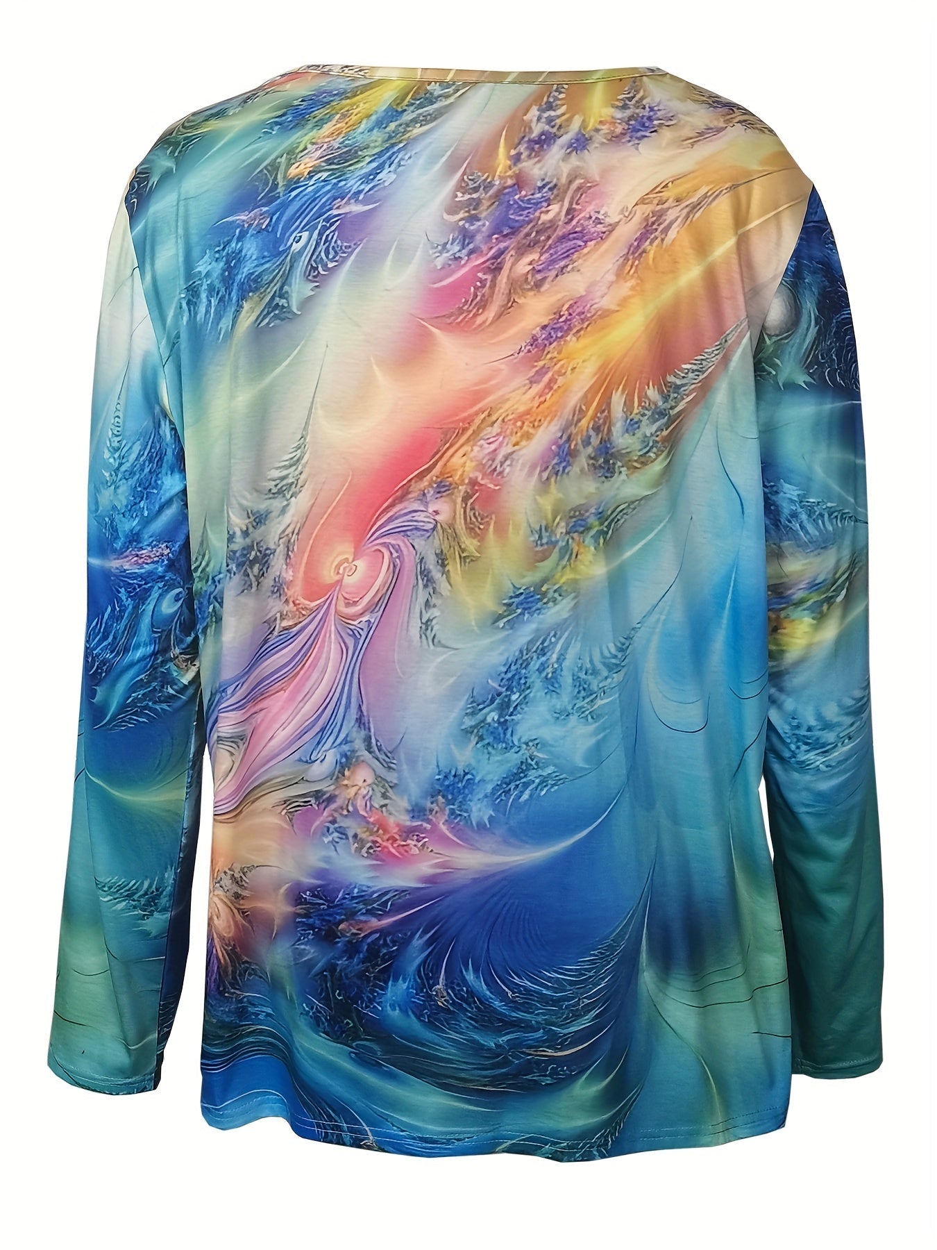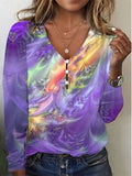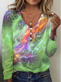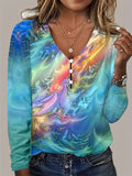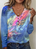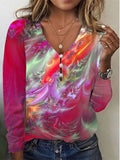 Women's Painting Print Long Sleeve V Neck Medium Stretch Henley T-shirt
