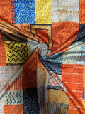 Sale Colorblock Geometric Print T-shirt with Medium Stretch and Flattering V-Neck