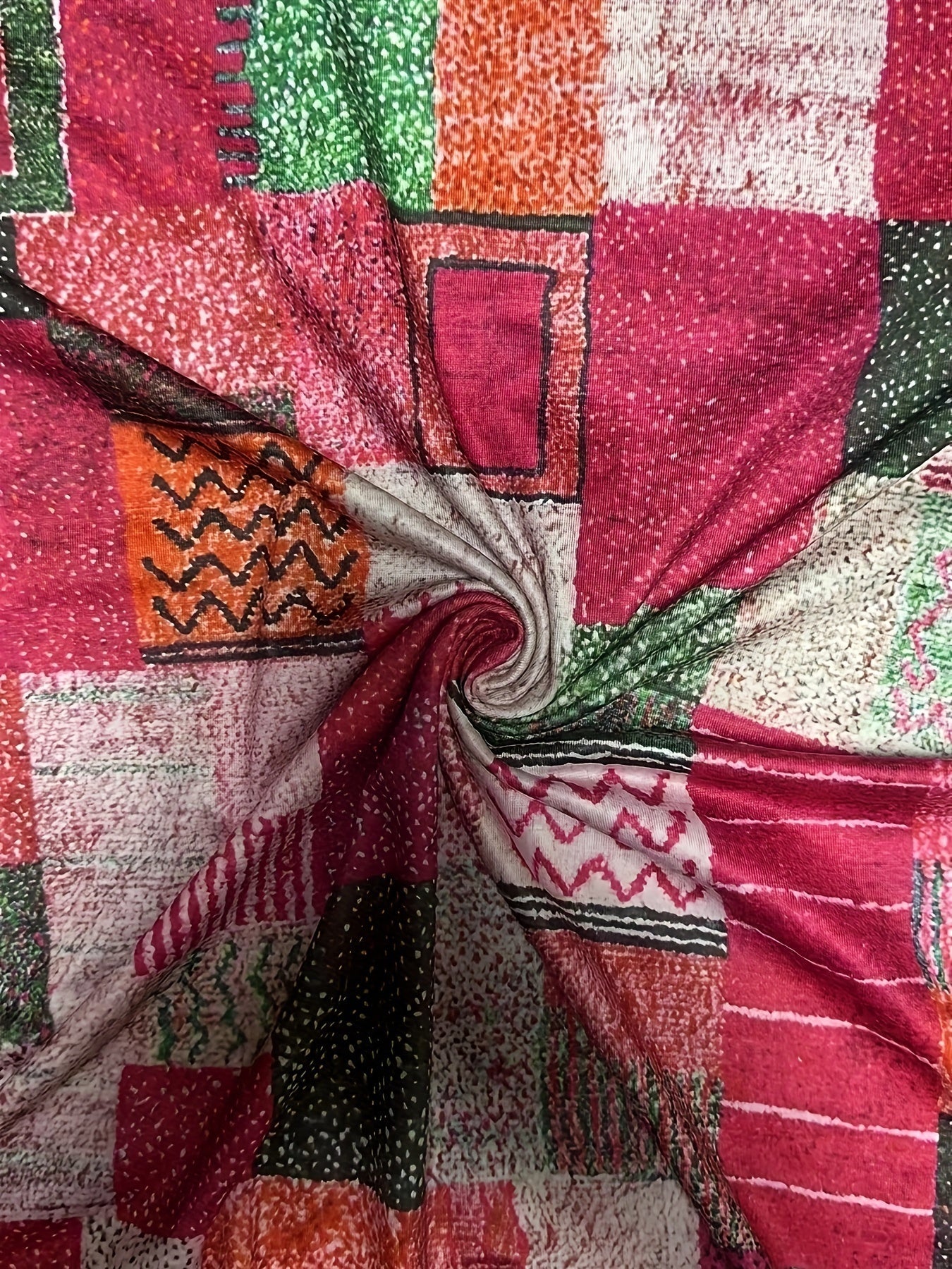 Colorblock Geometric Print T-shirt with Medium Stretch and Flattering V-Neck