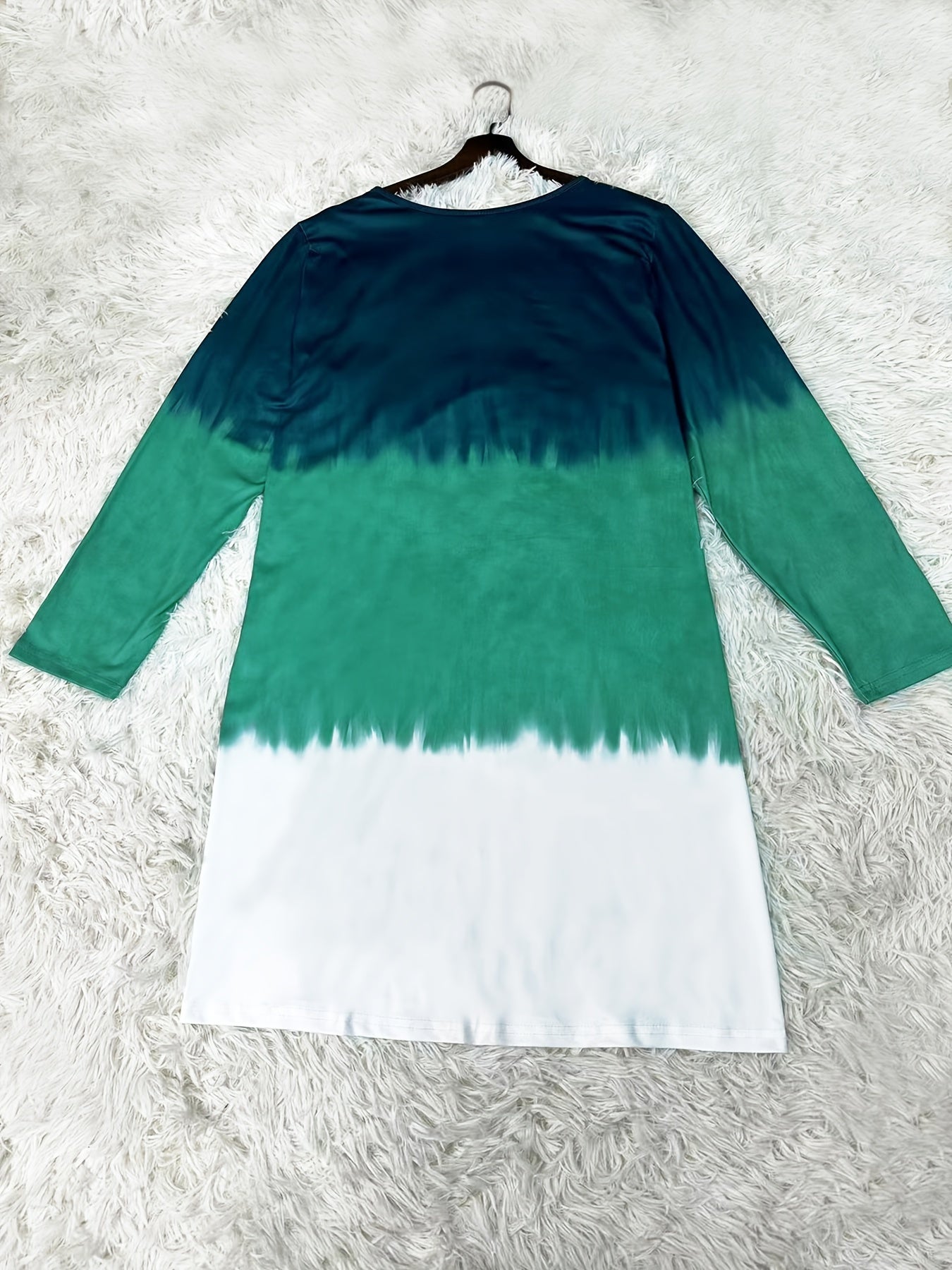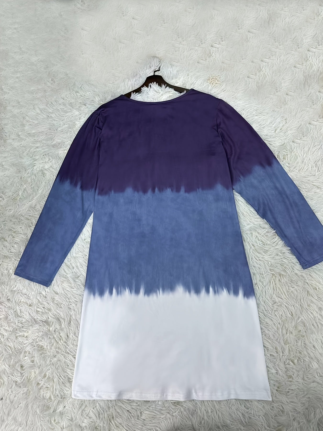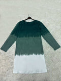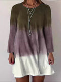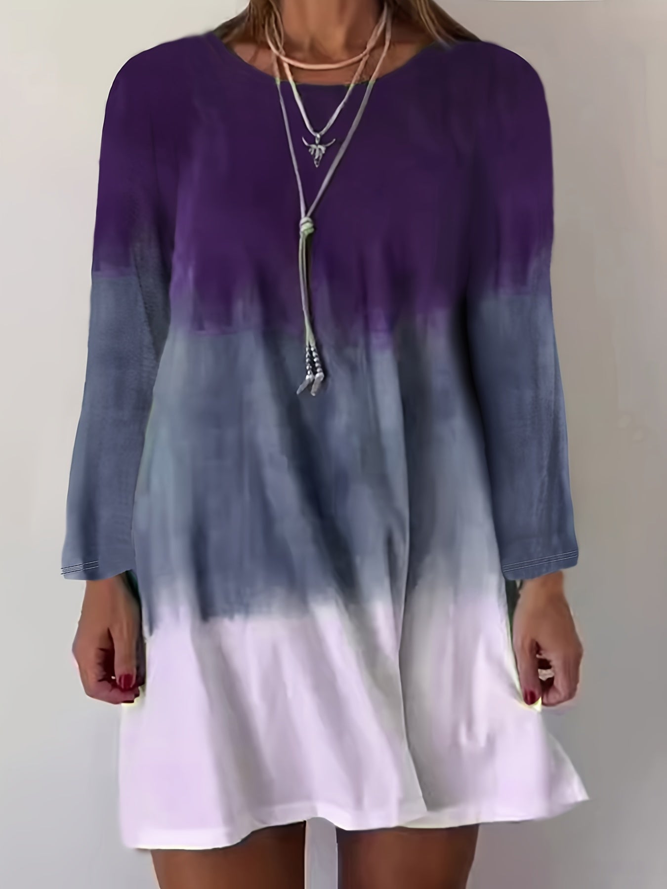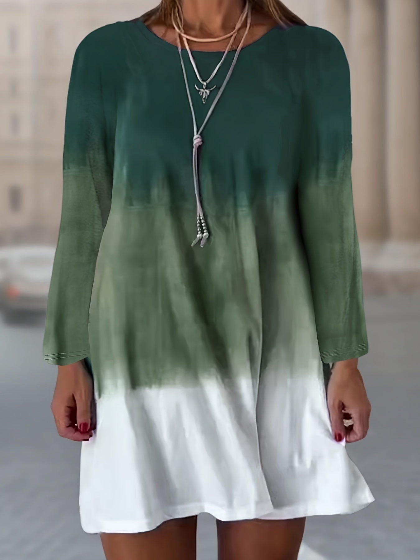 Ombre Color Crew Neck Casual Long Sleeve Dress