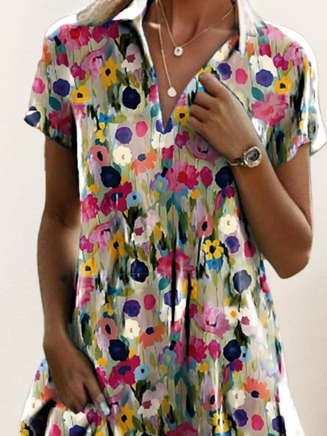 Women's Short Sleeve Floral Shirt Collar Daily Going Out Casual Midi Dress