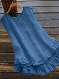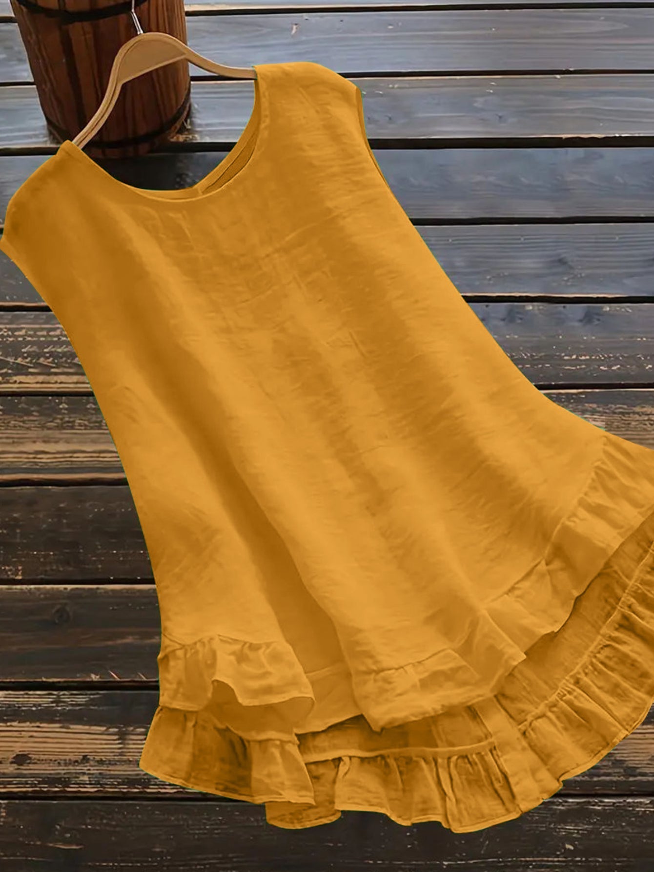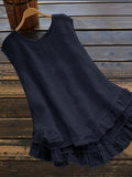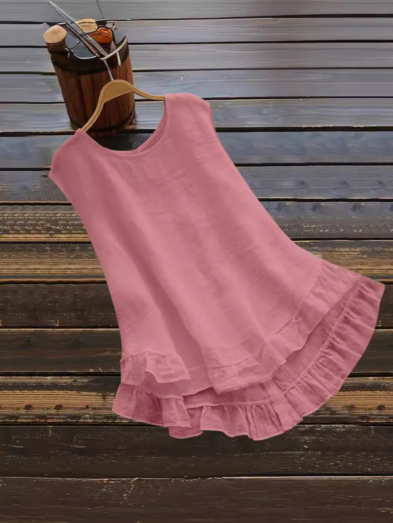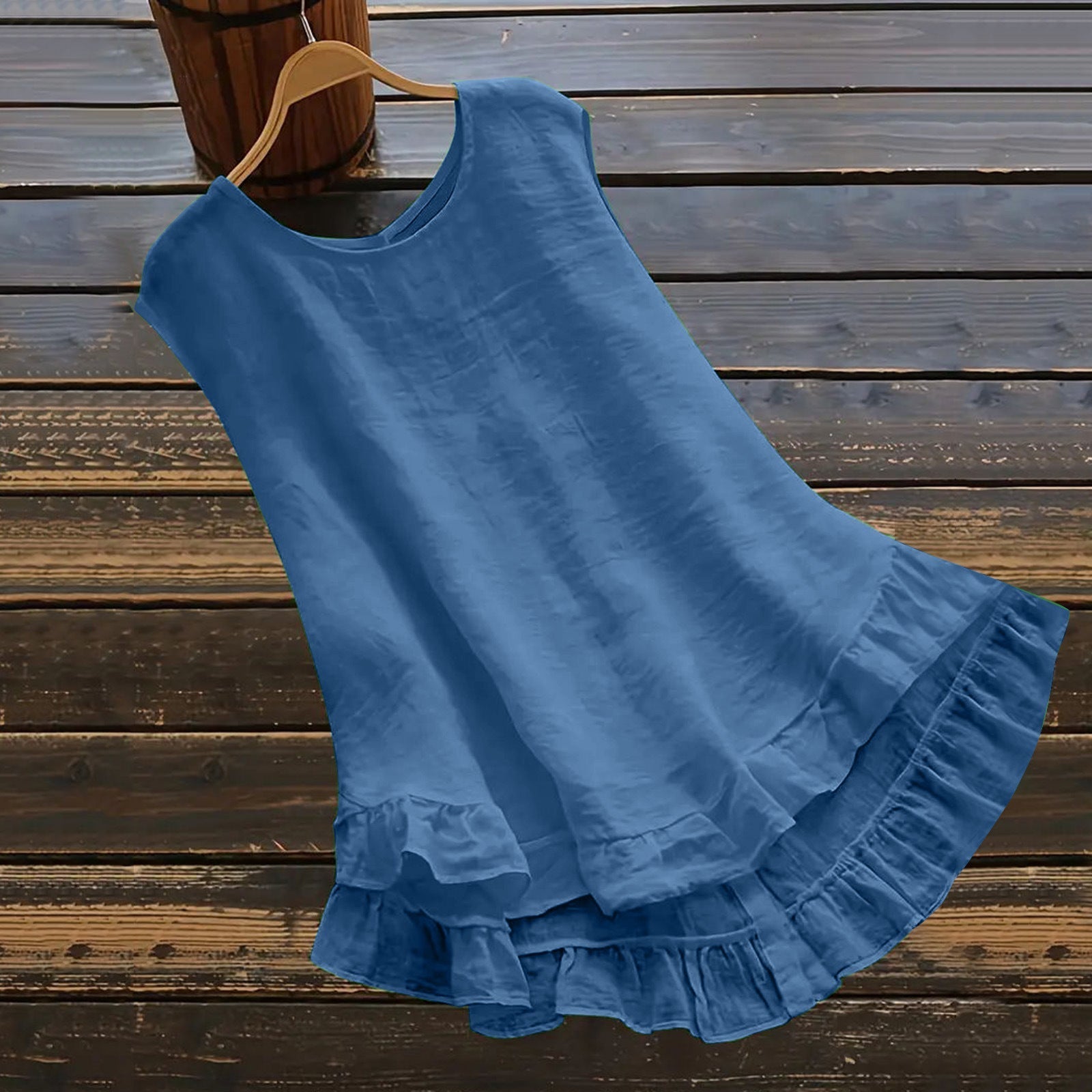 Sale Solid Color Blouse with Button Back Detail, Chic Crew Neck, and Ruffle Trim - Versatile Top for Casual or Formal Events
