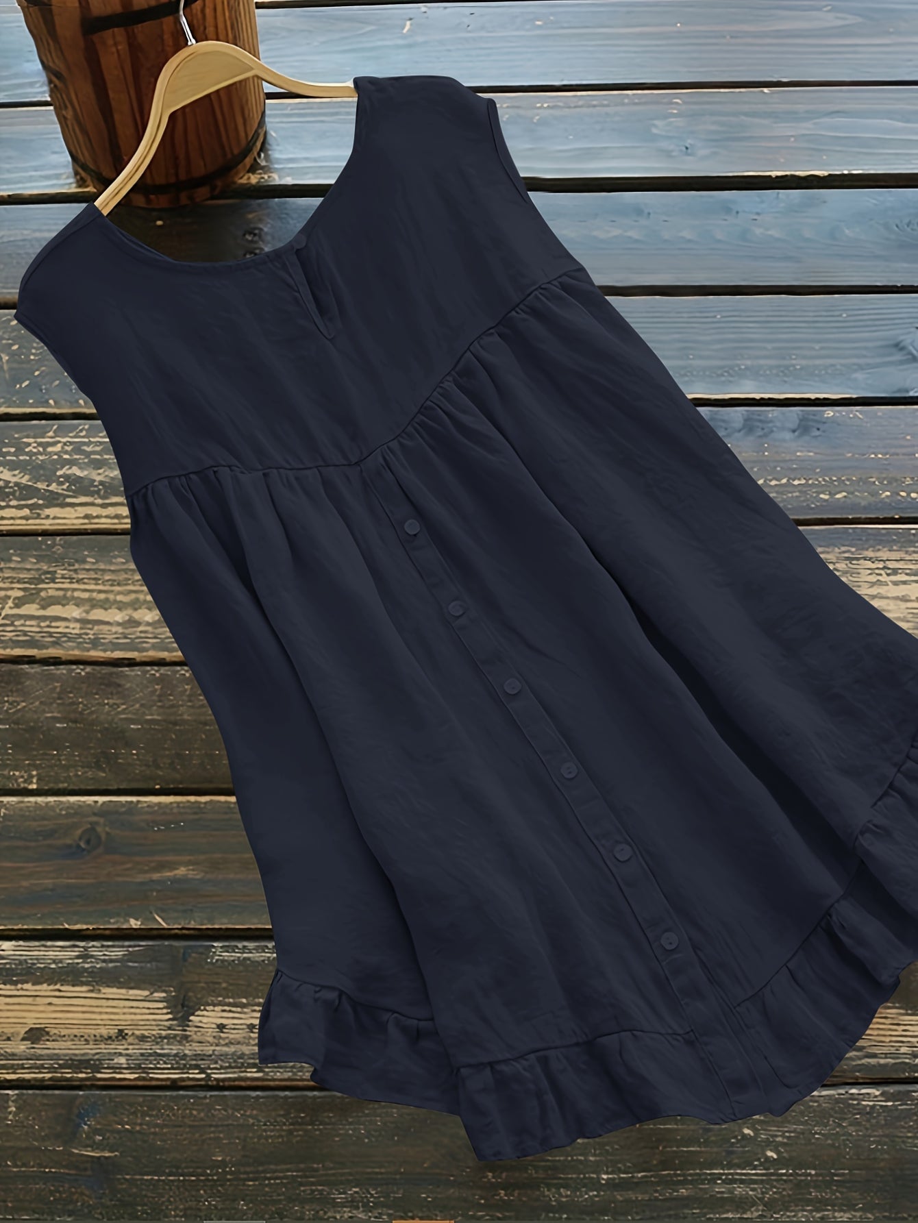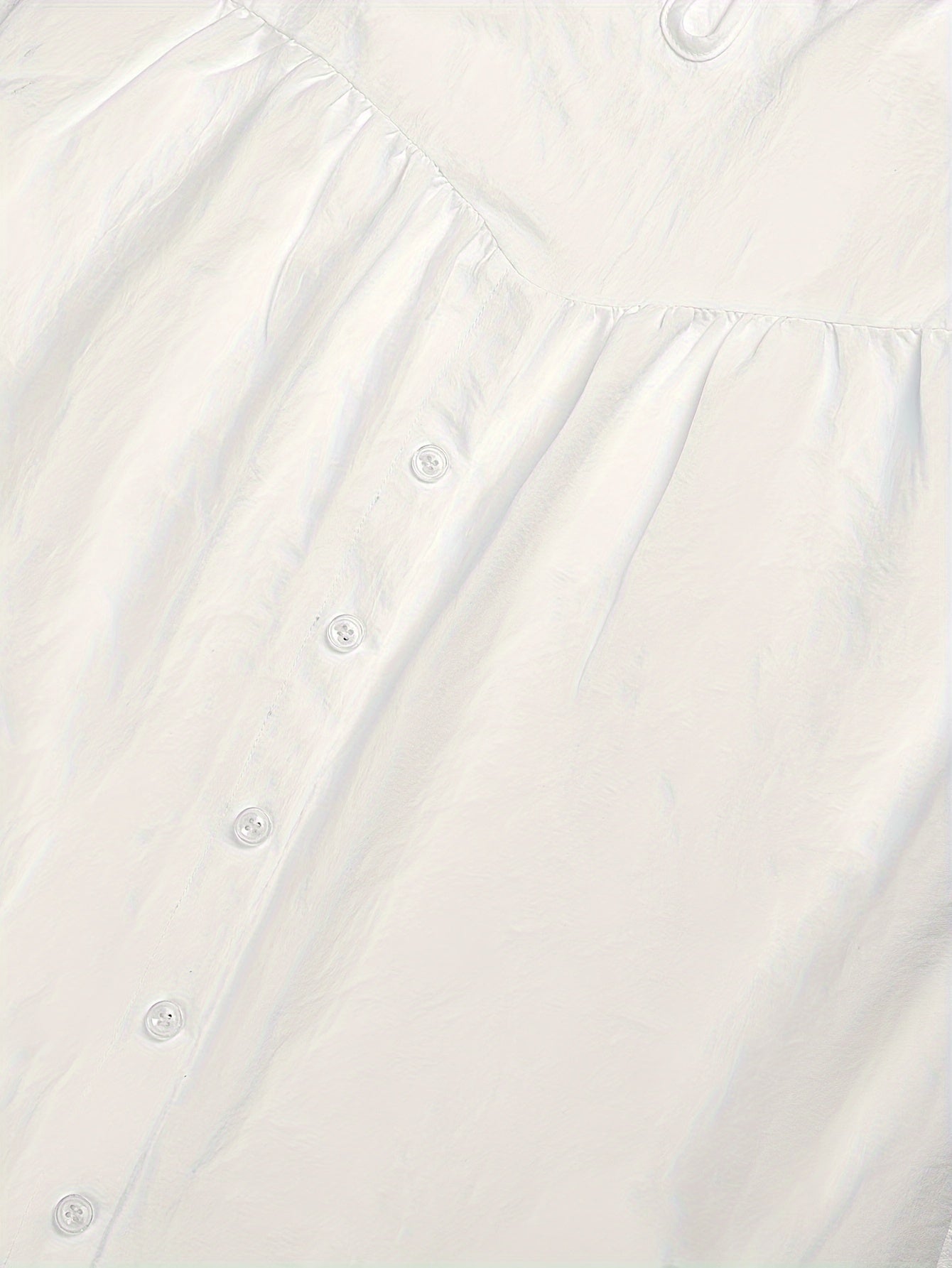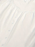 Solid Color Blouse with Button Back Detail, Chic Crew Neck, and Ruffle Trim - Versatile Top for Casual or Formal Events