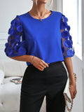 Sale Women's Solid Applique Blouse with Half Sleeves and Mesh Splicing