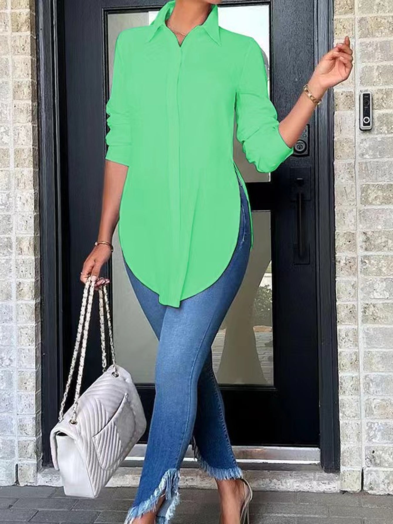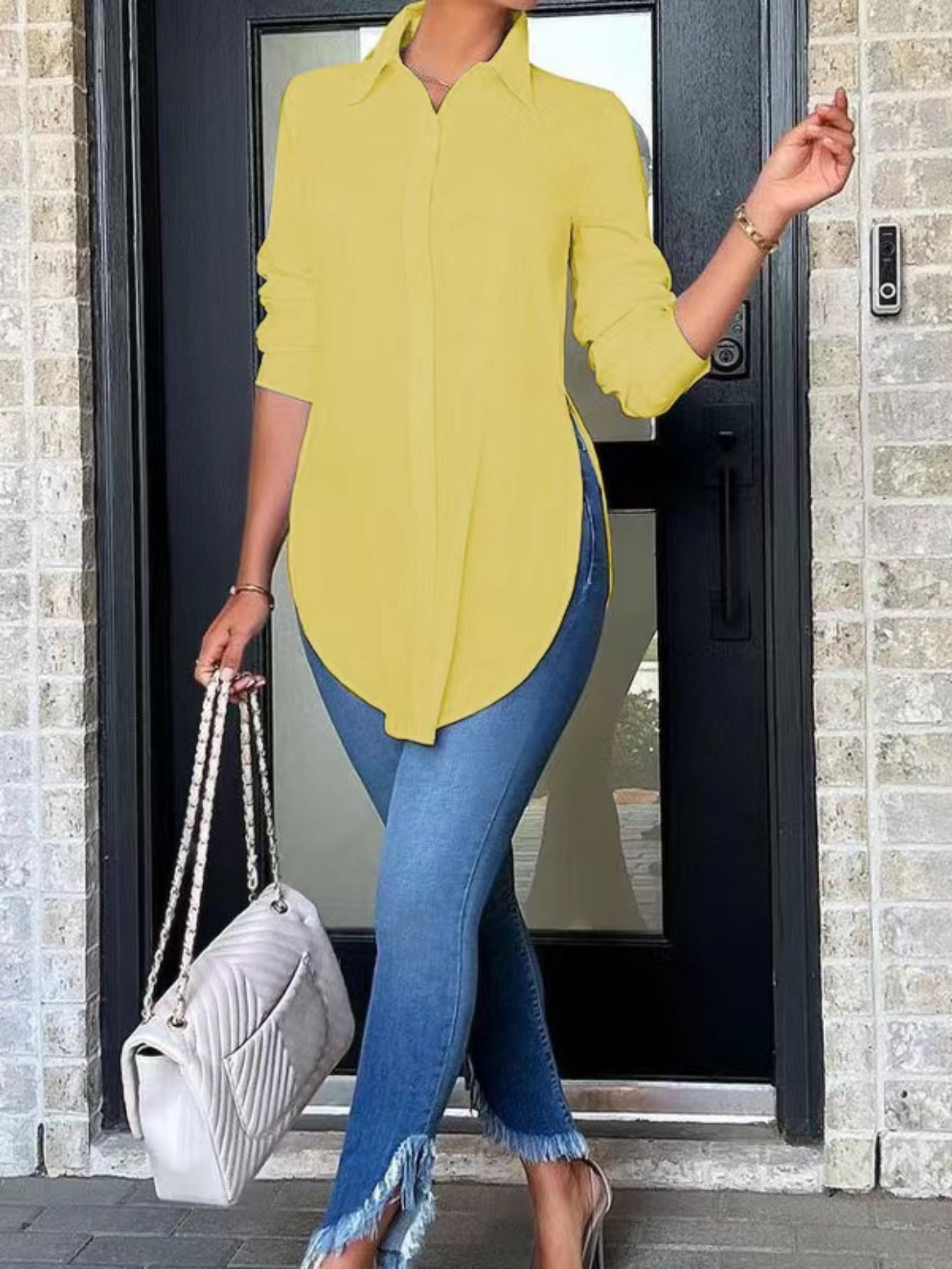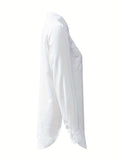 Women's Split Button Front Shirt - Casual Long Sleeve Curved Hem Top for Comfortable and Stylish Look
