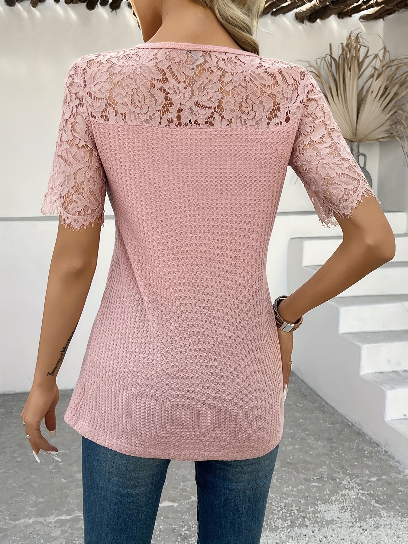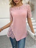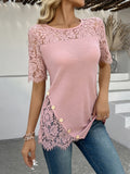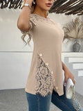 Sale Casual Contrast Lace Round Neck Long Sleeve T-Shirt