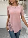 Sale Short Sleeve Round Neck Long Tunic with Floral Embroidery Lace Detail Knit Top