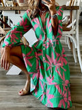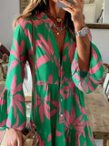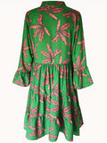 Leaves Print Tiered Long Sleeve Dress