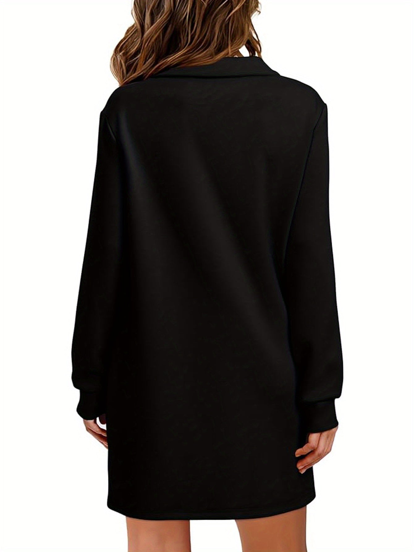 Sale Womens V Neck Long Sleeve Lapel Collared Sweatshirt Dress Loose Fit Solid Color Mini Dresses