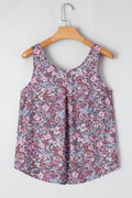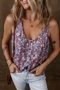 Yellow Boho Floral Pleated Buttoned Front Tank Top