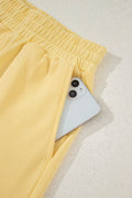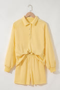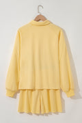 Yellow Cream Button Collar Drop Shoulder Pullover and Shorts 2pcs Outfit