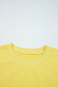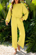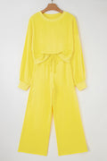 Yellow Cream Drop Shoulder Puff Sleeve Crop Pullover Drawstring Wide Leg Pants Set