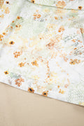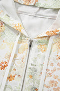 Yellow Floral Print Half Zip Hooded Long Sleeve Top